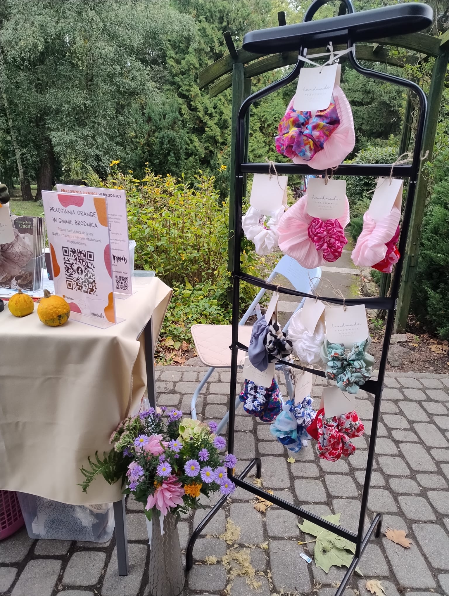 Na stoisku prezentowaliśmy scrunchie zero waste uszyte przez dzieci i młodzież przy wsparciu liderek i opiekunów. Dodatkowo oferowaliśmy wypieki oraz dżem z dyni. Środki zebrane podczas wydarzenia zostaną przeznaczone na materiały do zajęć w pracowni.