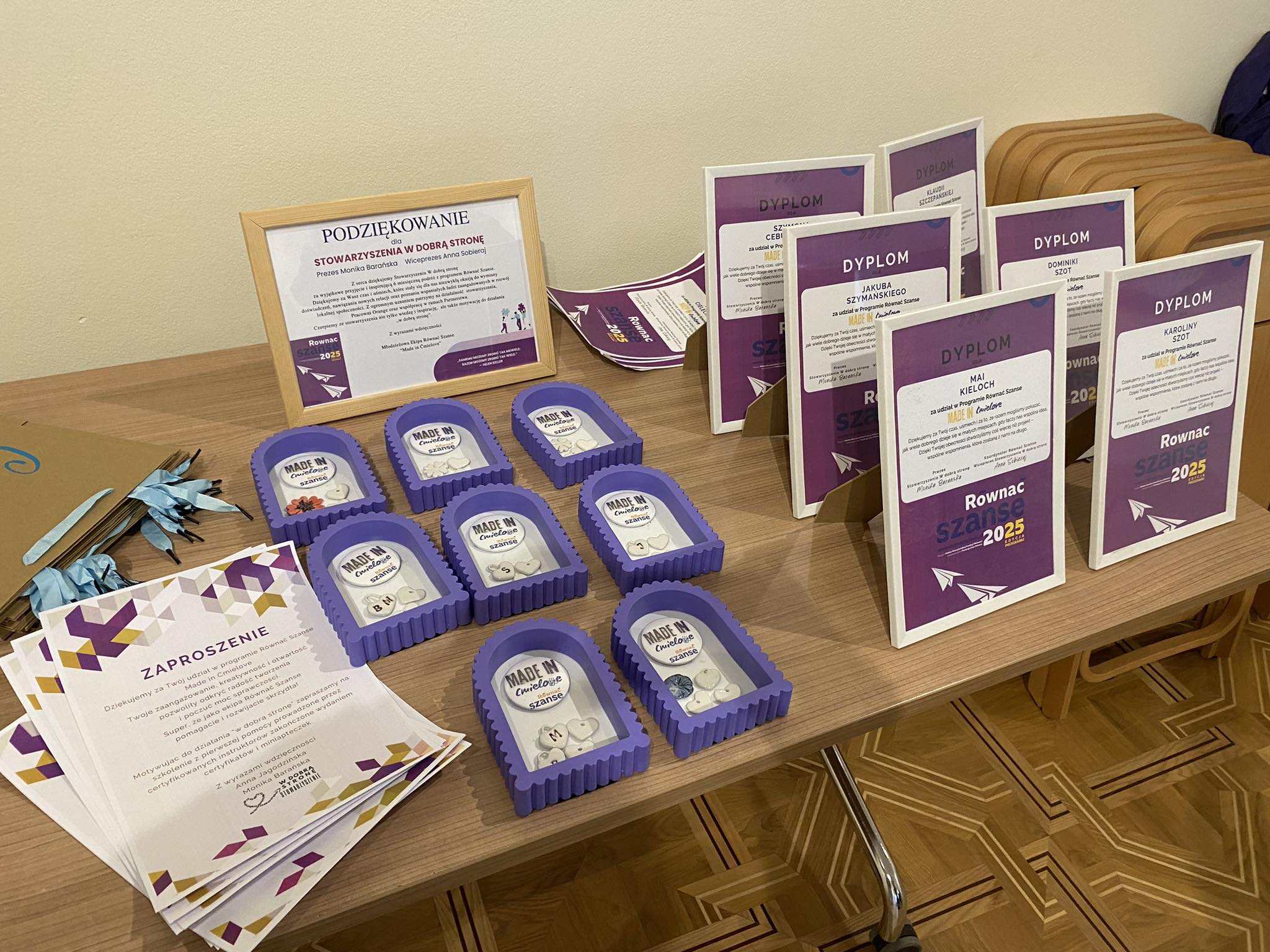 Zaczęło się od słoika marzeń zakopanego podczas integracji nad rzeką Kamienną, zaangażowaliśmy się w Dzień Dziecka na stadionie na który młodzież wykonała przypinki, dziewczyny robiły dzieciom warkoczyki a chłopcy balonowe zwierzątka. Potem była wycieczka do Warszawy, pierwsze iskry lutownicy w FabLabie Fundacji Orange podczas wykonywania naszego wspólnego ledonu, szkolenie z projektowania i wykonywanie własnych nadruków na koszulkach. Byliśmy w escaperoomie i hangarze 646 na trampolinach. Jak podkreśla młodzież była to ich najlepsza wycieczka ever!