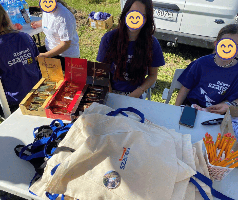 Na starcie rozdaliśmy pakiety startowe które sami przygotowaliśmy, zrobiliśmy nadruki na torbach bawełnianych, wykonaliśmy przypinki, zrobiliśmy nadruki logo RPK na naszych białych t-shirtach, zbieraliśmy podpisy od uczestników, wydawaliśmy wodęa na mecie w Dworze Amelii czekała najmłodszych cała paka atrakcji!
