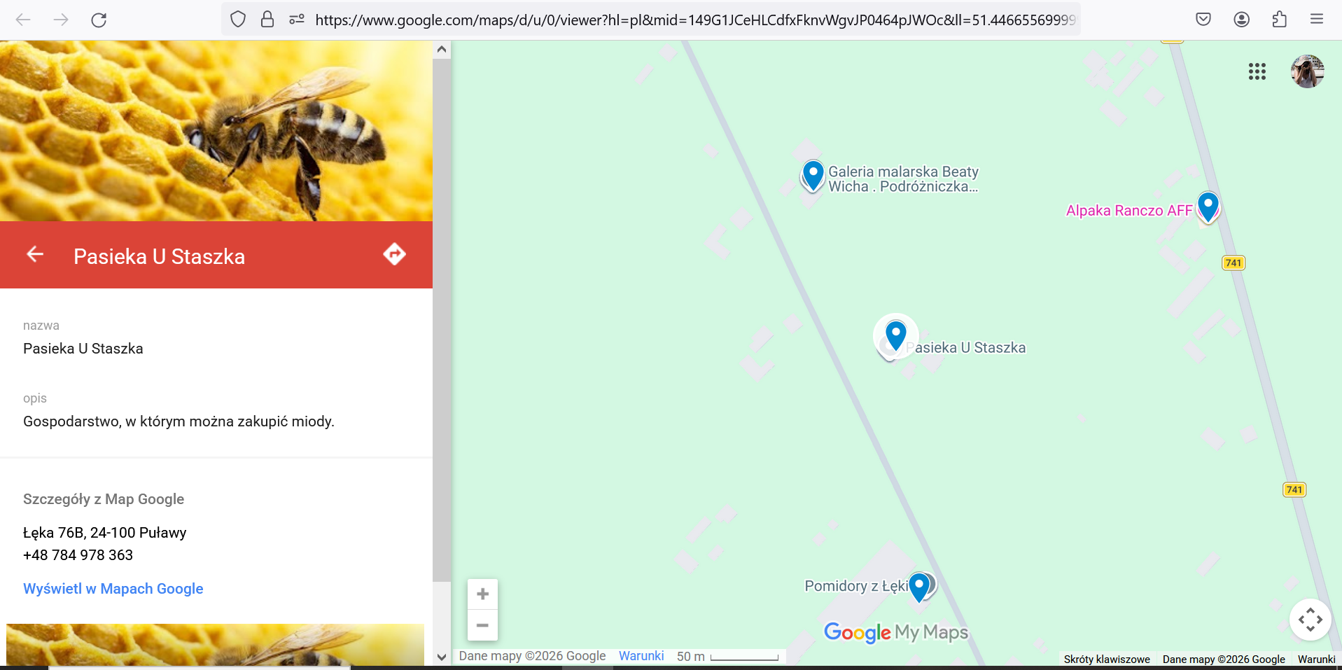 Screen z portalu Google Maps - Moje mapy