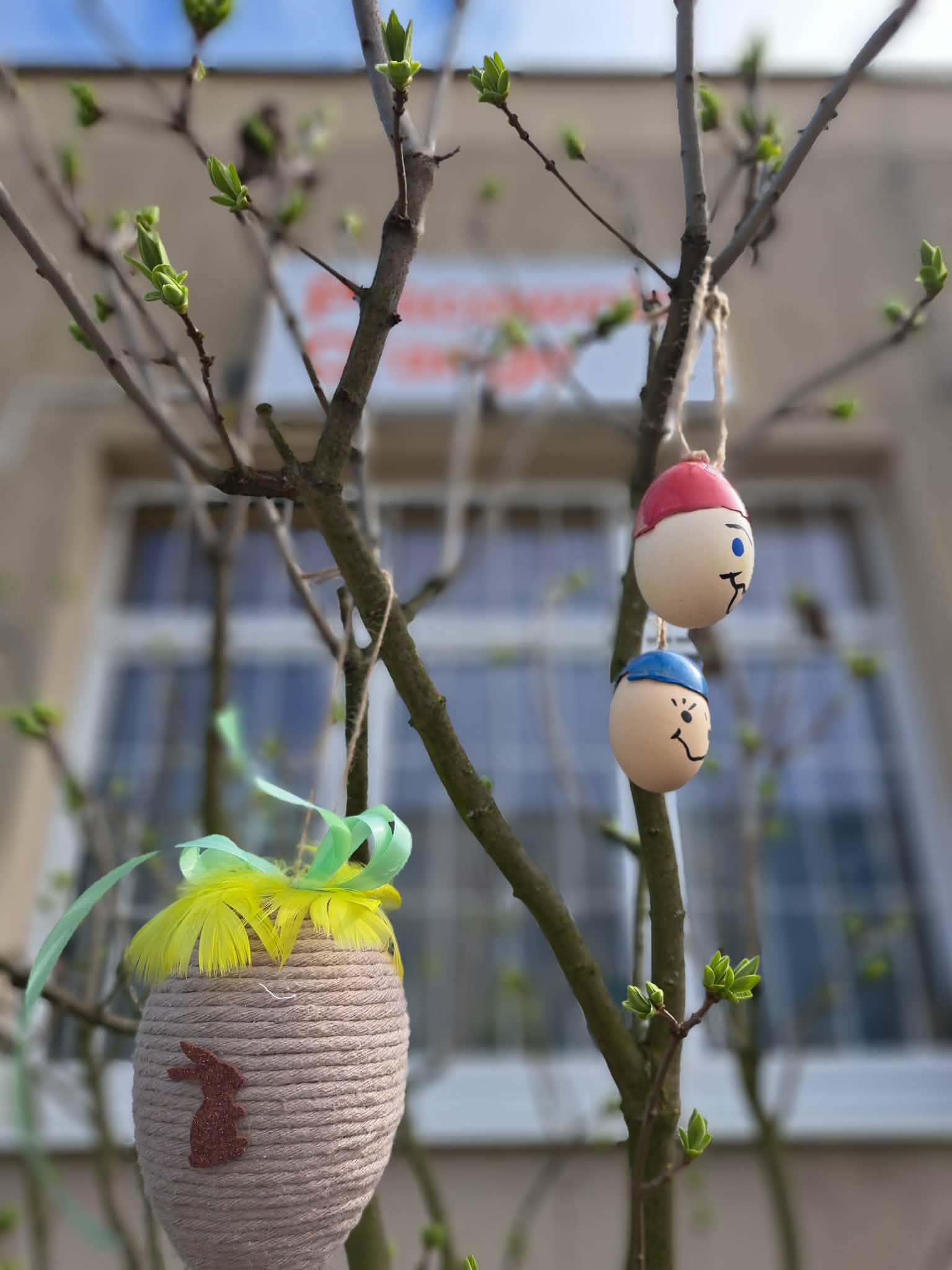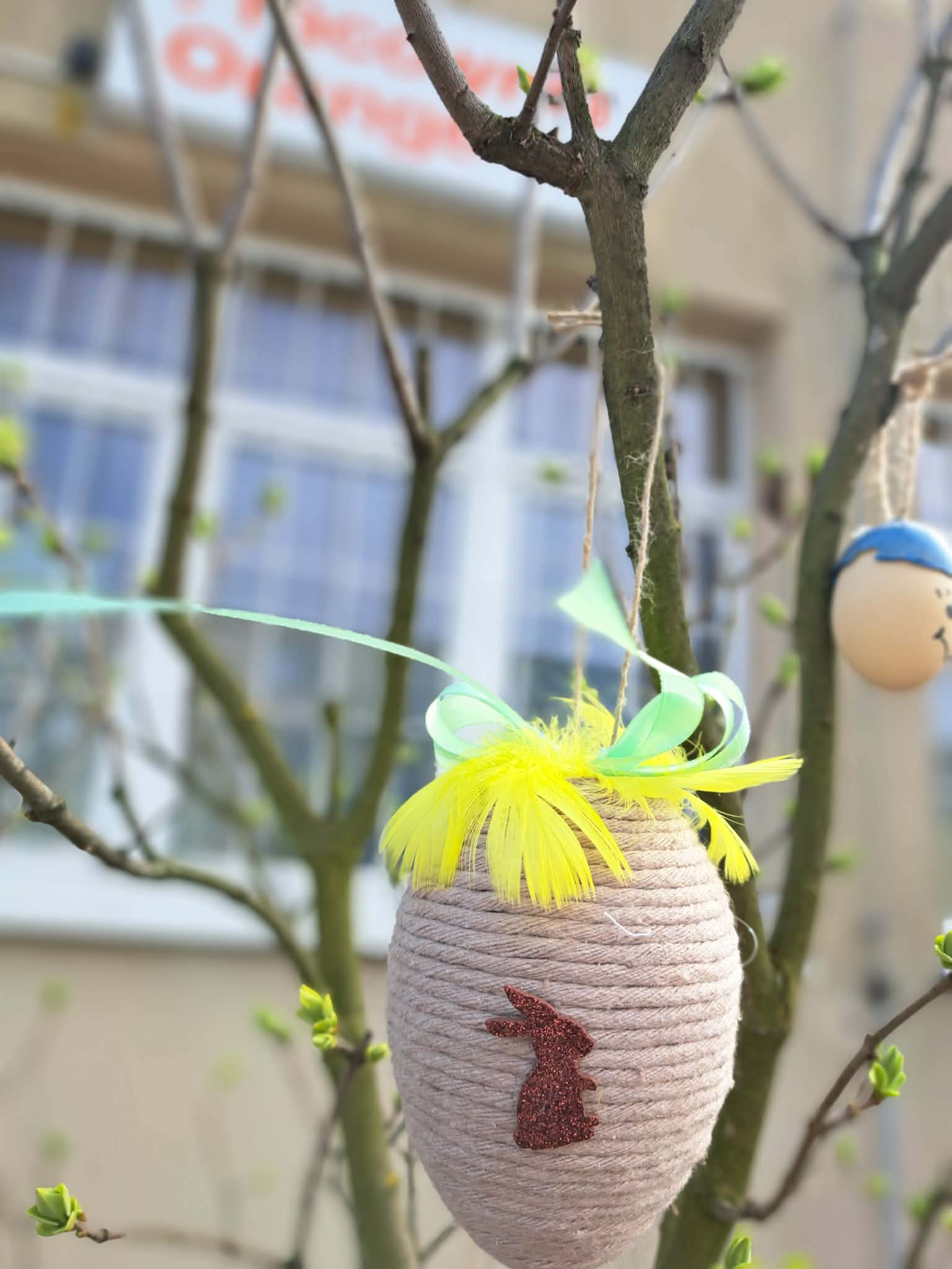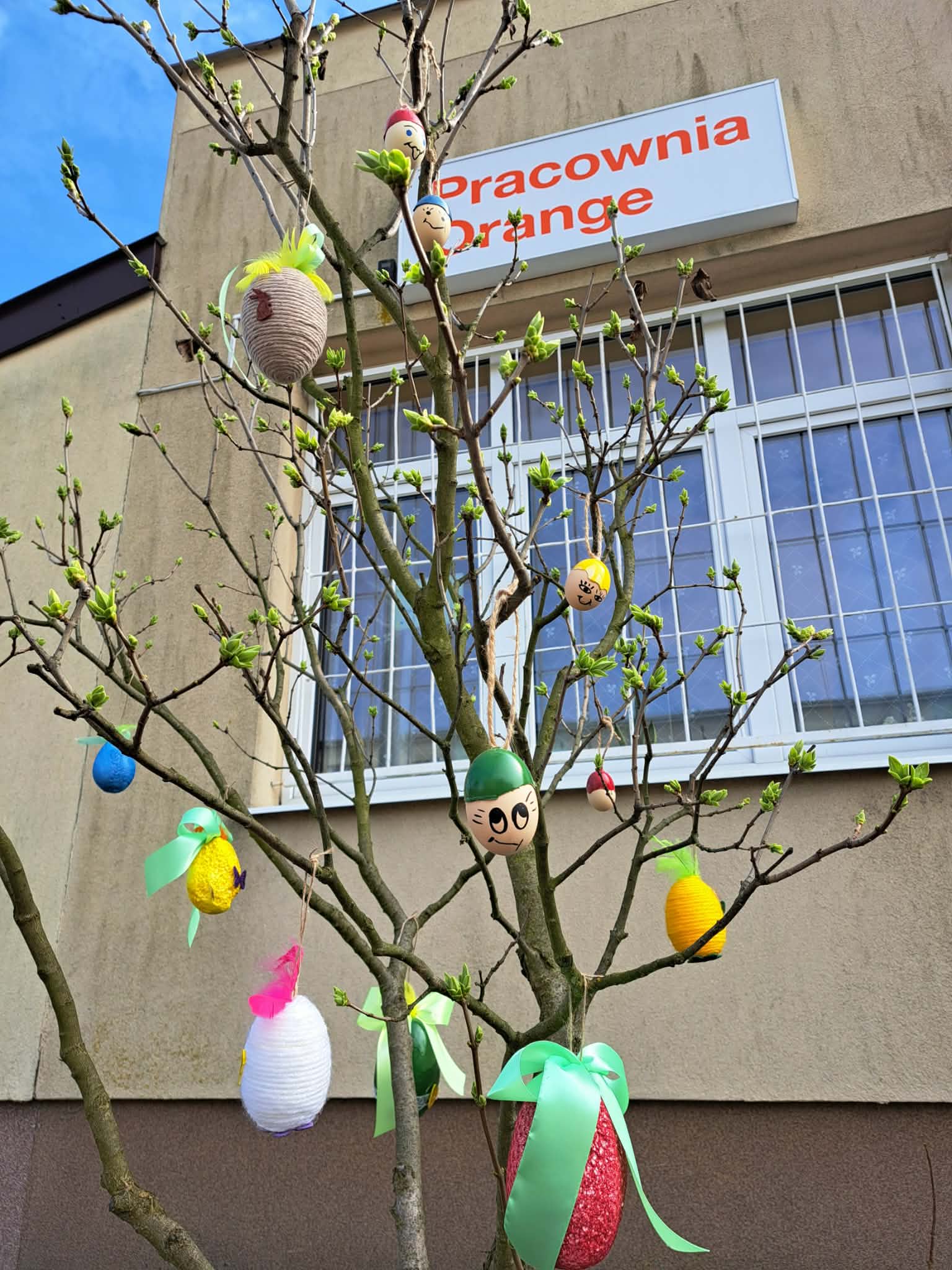 Na zewnątrz Pracowni udekorowaliśmy drzewko wielkanocne własnoręcznie przygotowanymi ozdobami. Kolorowe pisanki i dekoracje zawieszone na gałęziach stały się symbolem wspólnego działania i integracji uczestników.