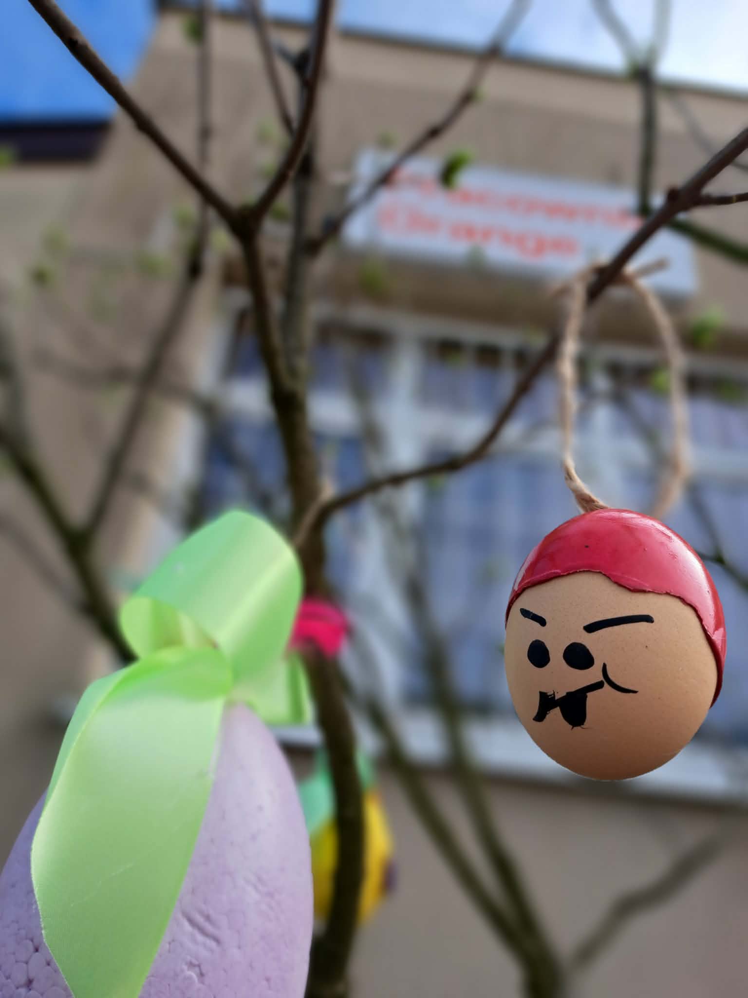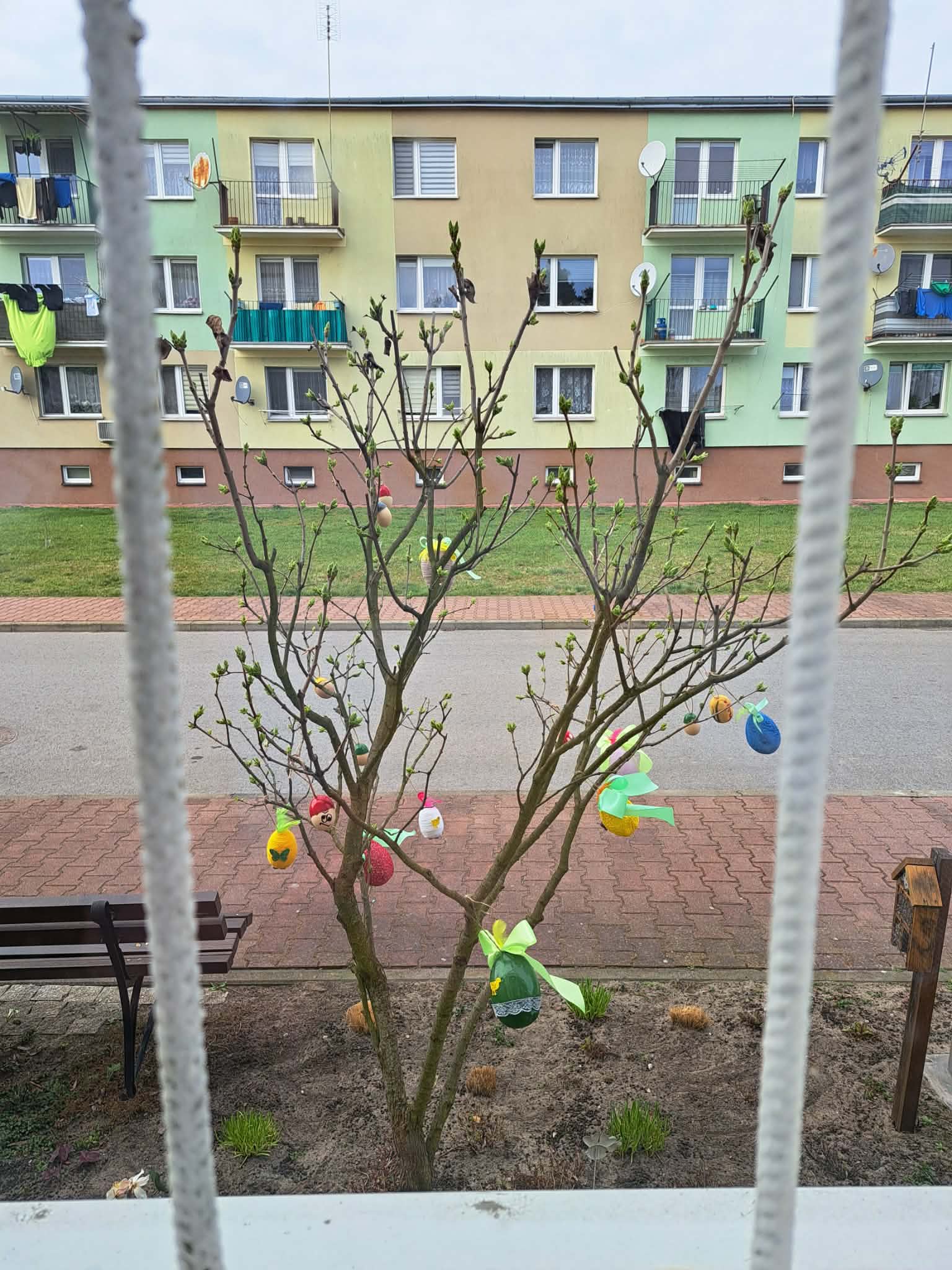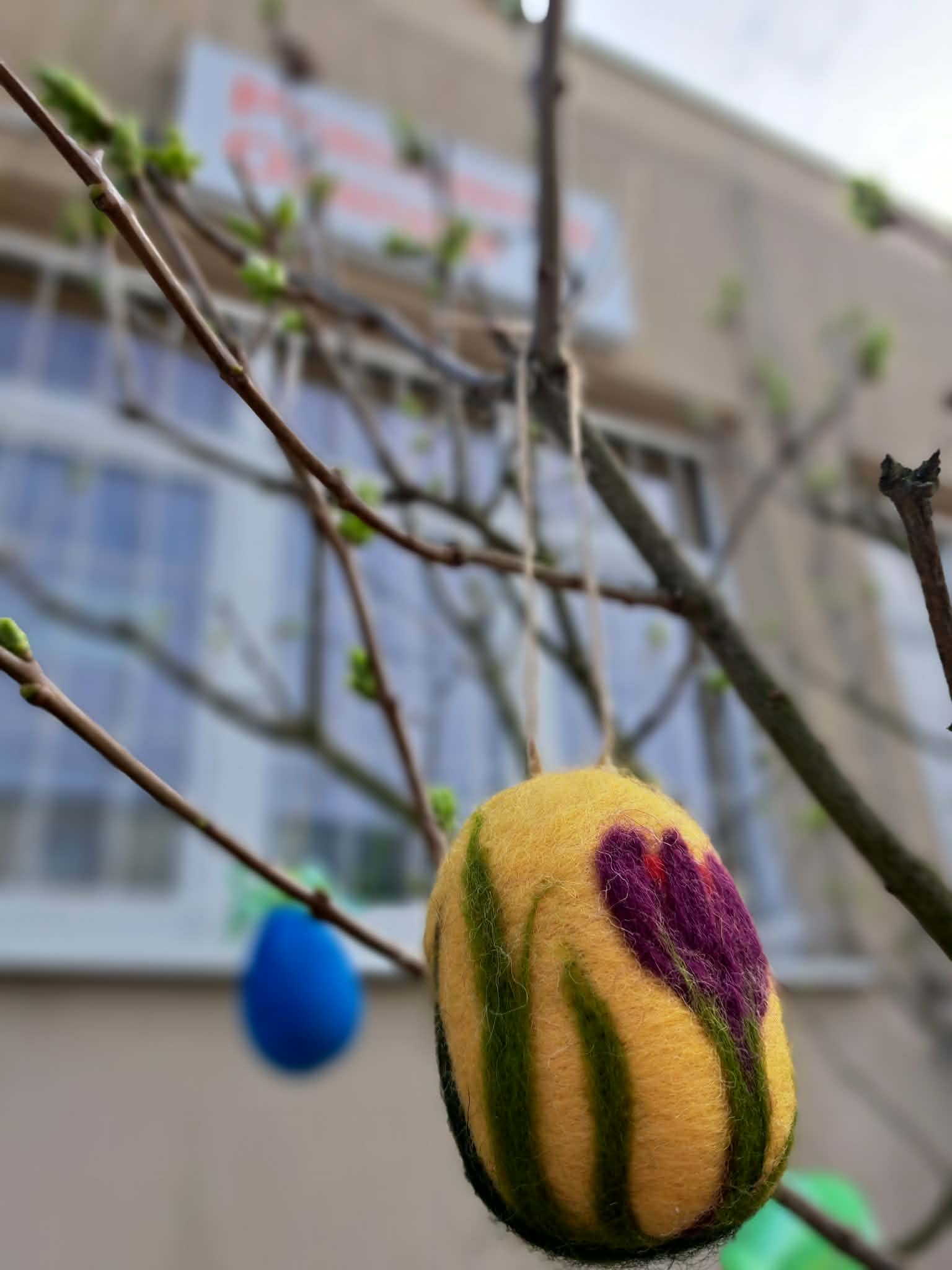 Na zewnątrz Pracowni udekorowaliśmy drzewko wielkanocne własnoręcznie przygotowanymi ozdobami. Kolorowe pisanki i dekoracje zawieszone na gałęziach stały się symbolem wspólnego działania i integracji uczestników.