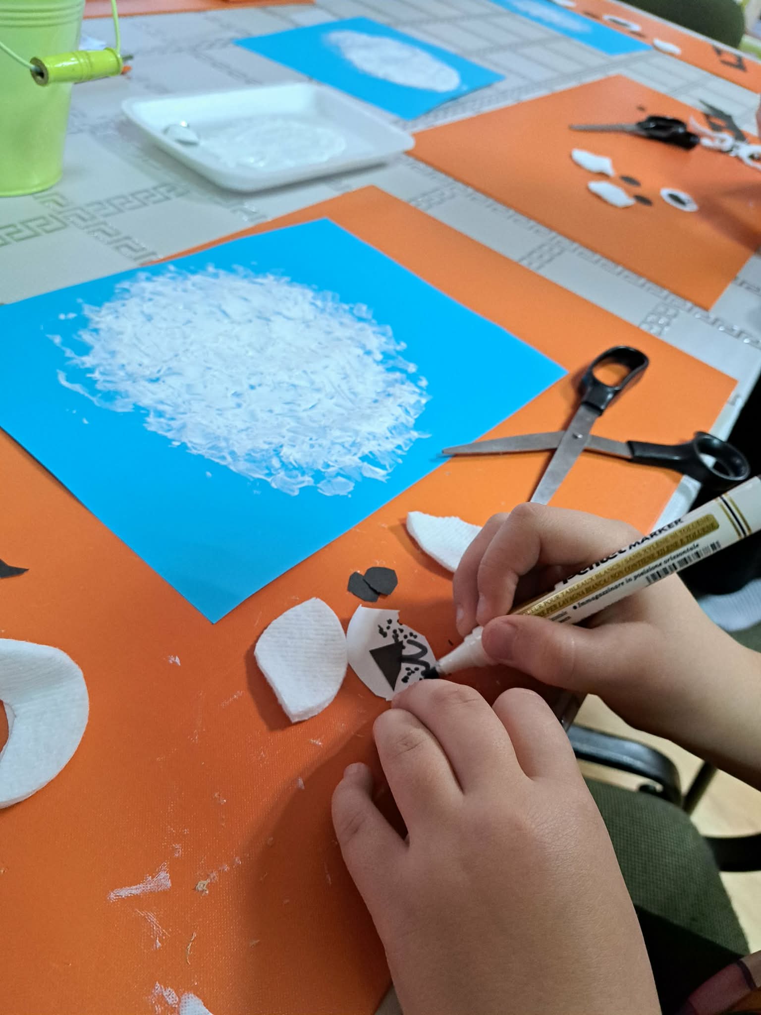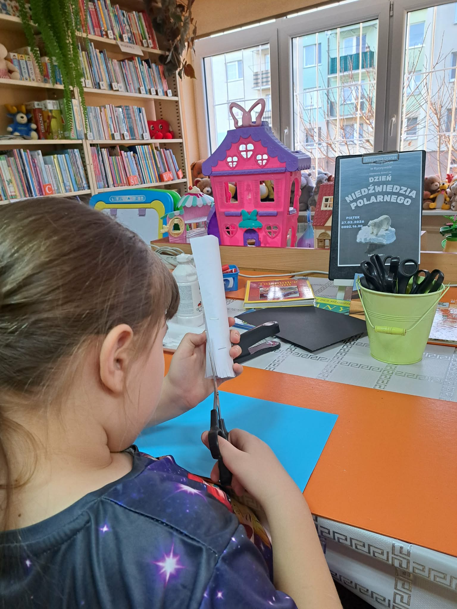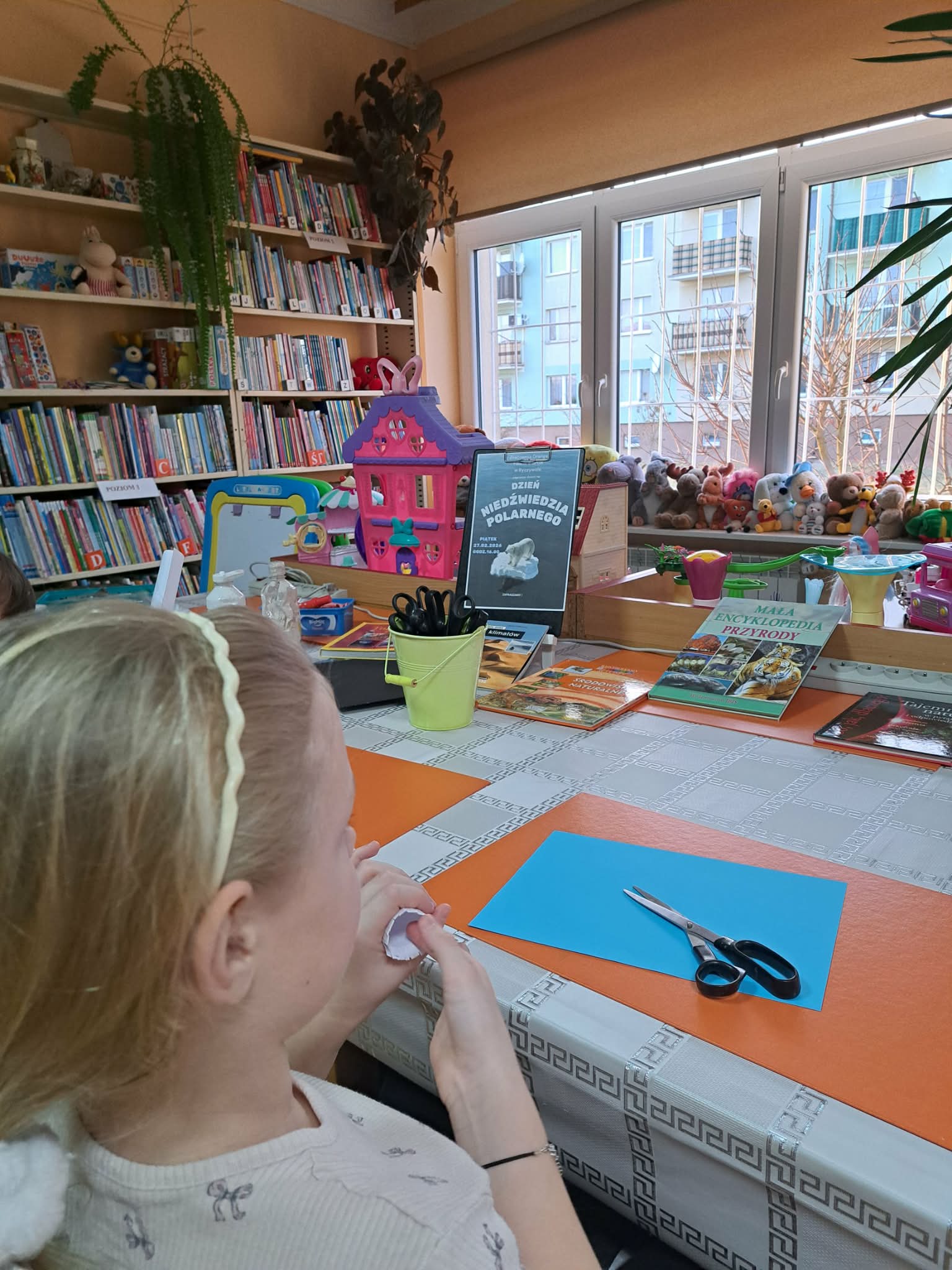 . Dzieci z ogromnym zaangażowaniem wykonywały portrety niedźwiedzia polarnego, wykazując się kreatywnością i pomysłowością. Powstały piękne prace, które ozdobiły naszą bibliotekę