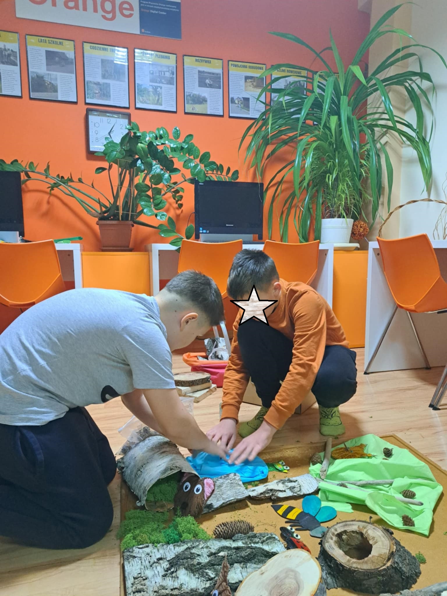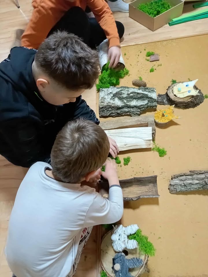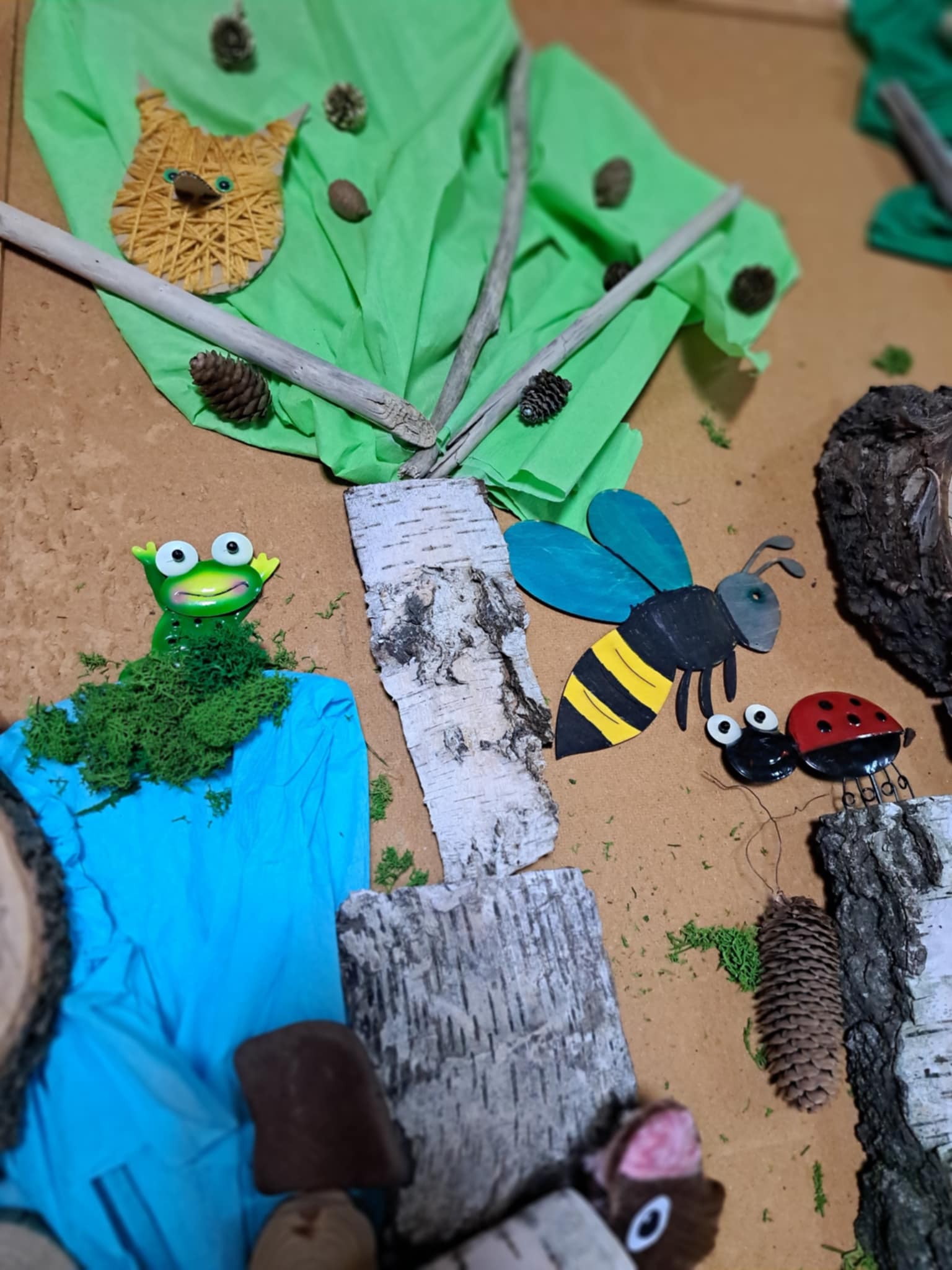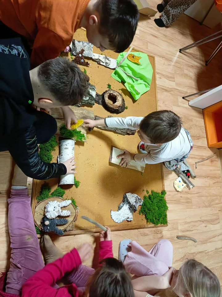 Gotowe prace stały się częścią wspólnej makiety lasu, która z każdą chwilą ożywała coraz bardziej 🌳🦔. To była piękna lekcja współpracy, kreatywności i radości z tworzenia ❤️😊