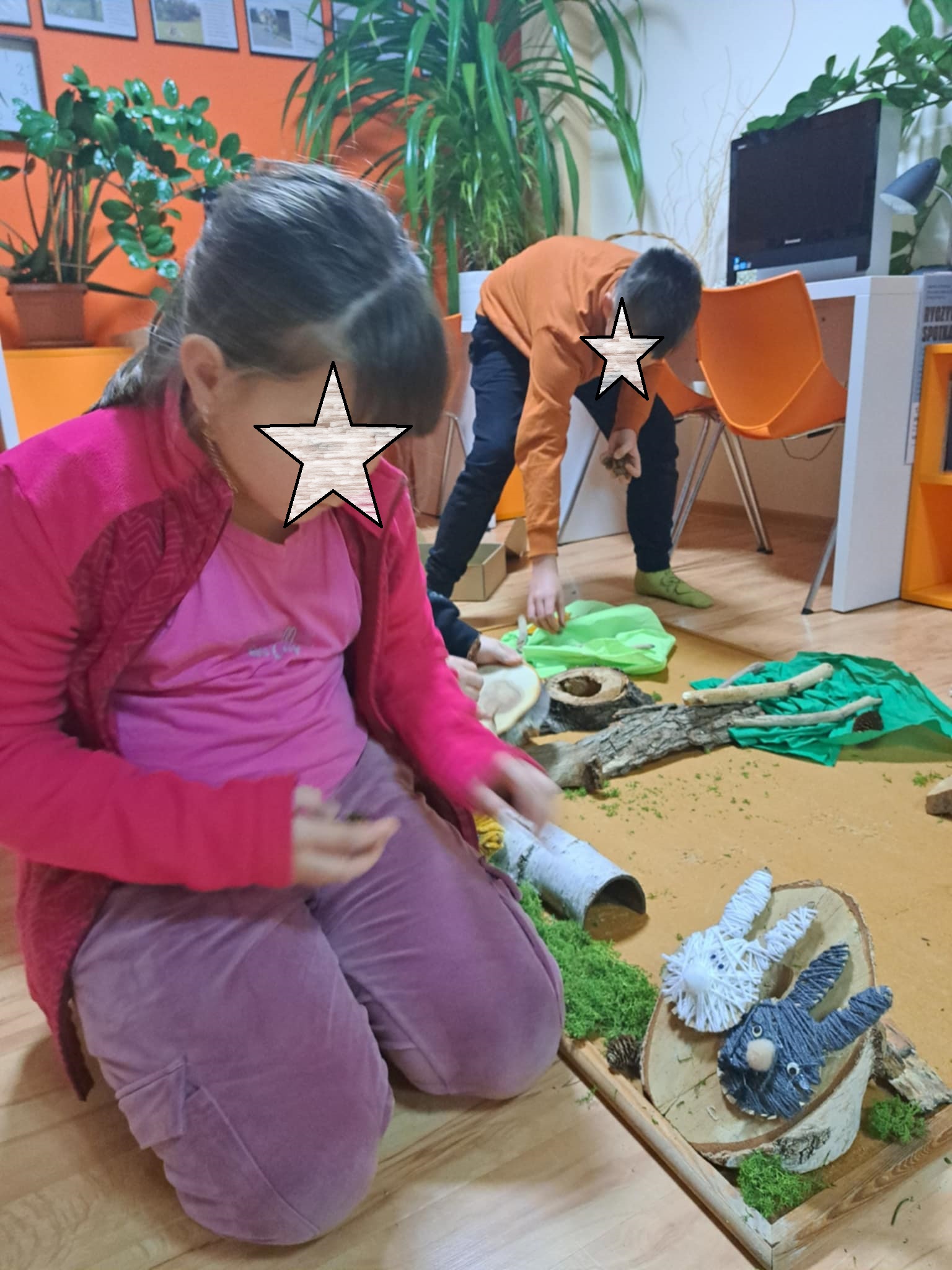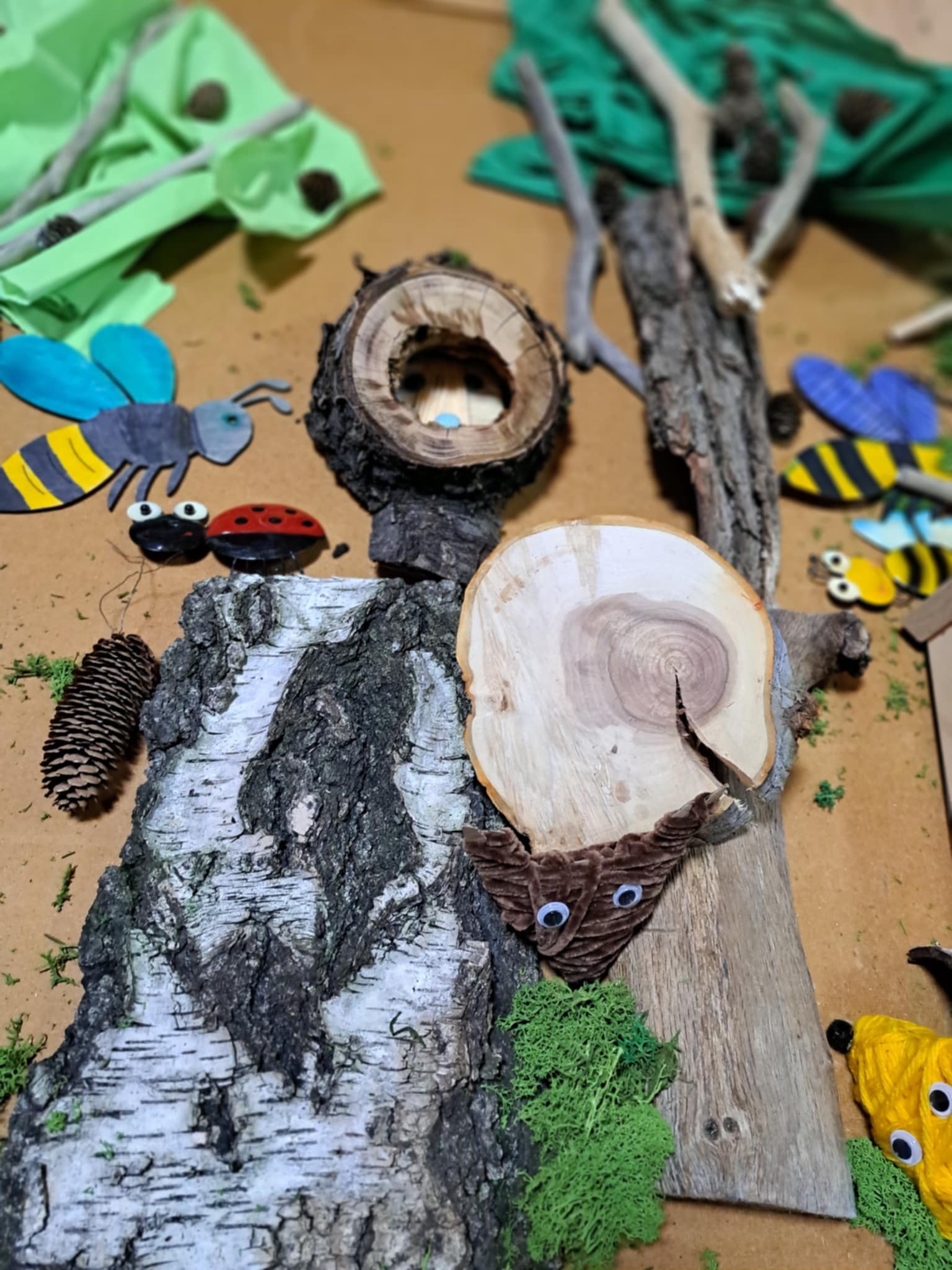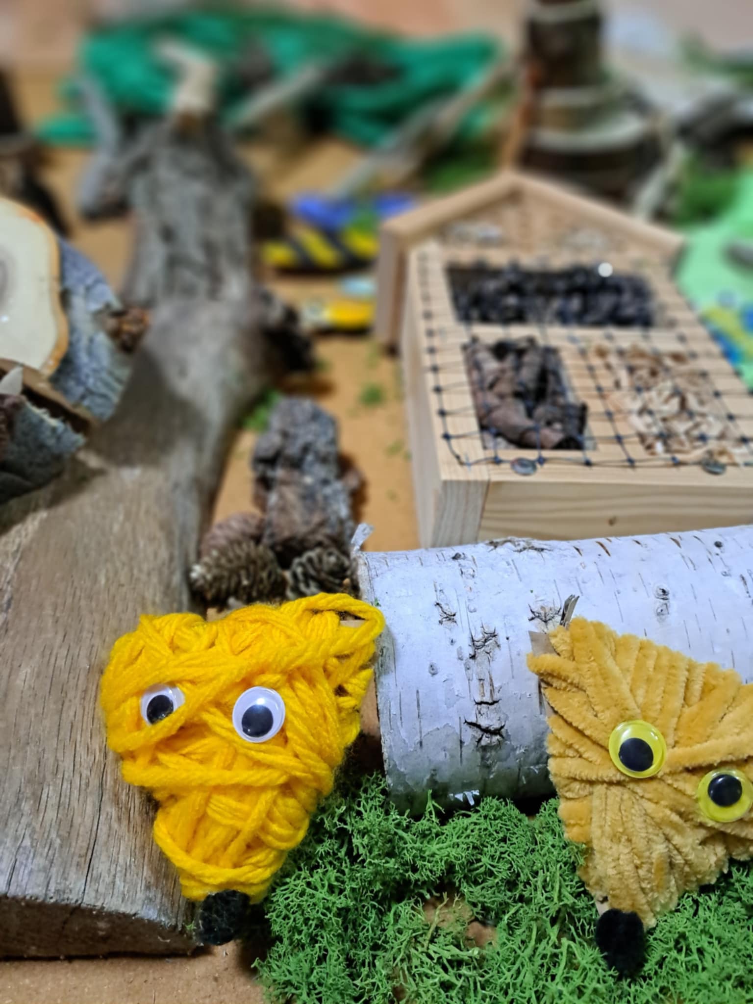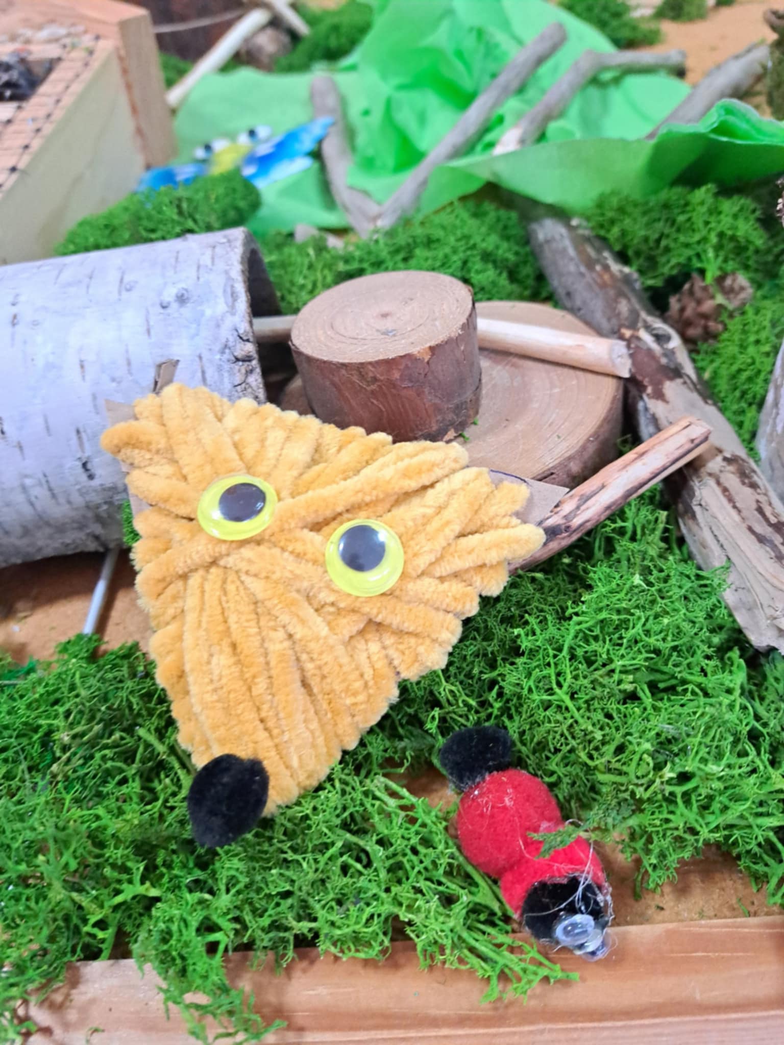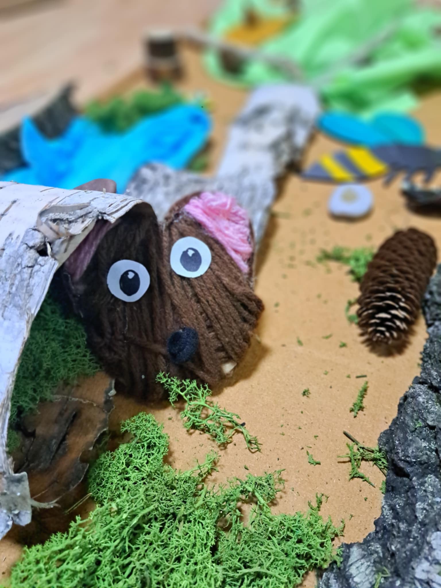 Podczas zajęć plastycznych dzieci z ogromnym zaangażowaniem tworzyły leśne zwierzęta z włóczki 🧵💚. Powstawały m.in. wilk 🐺, niedźwiedź 🐻, kret, lisy 🦊, sowy 🦉,zajączki, jeleń 🦌, myszka 🐭, a także… małe robaczki 🐛 – bo przecież one też są ważnymi mieszkańcami lasu 😊🌲.