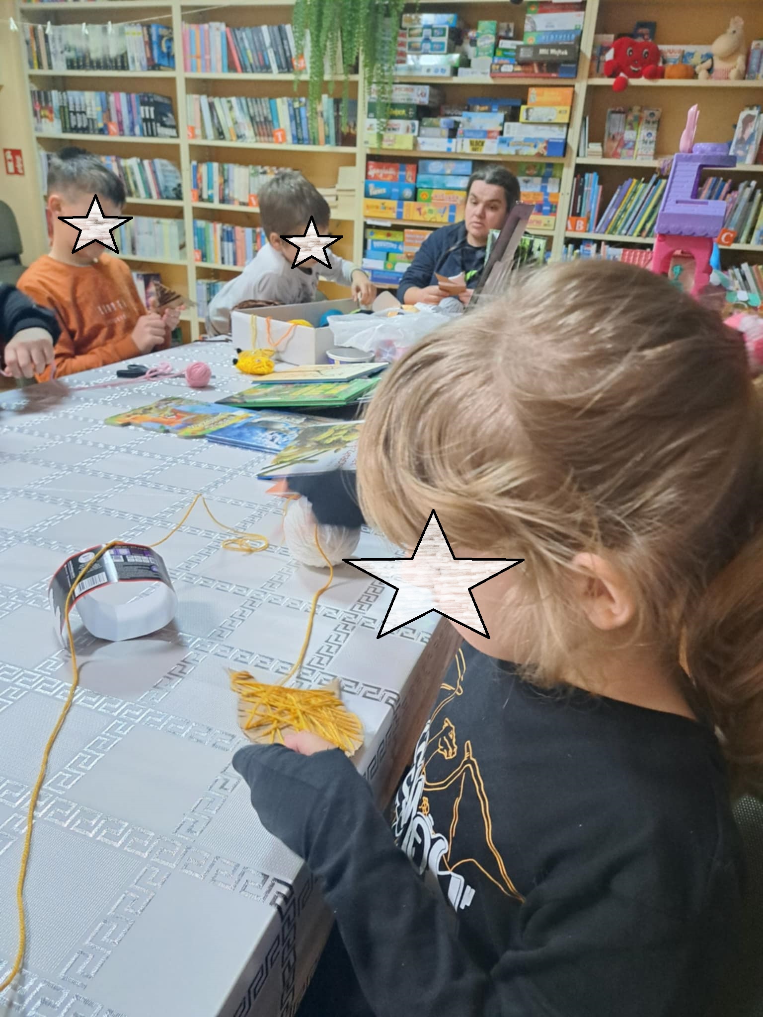Praca z włóczką wymagała skupienia i precyzji, dzięki czemu dzieci ćwiczyły motorykę małą, cierpliwość i dokładność ✋🧠. Każde zwierzątko było inne, wyjątkowe i stworzone według własnego pomysłu – nie brakowało kolorów, detali i fantazji 🎨✨.