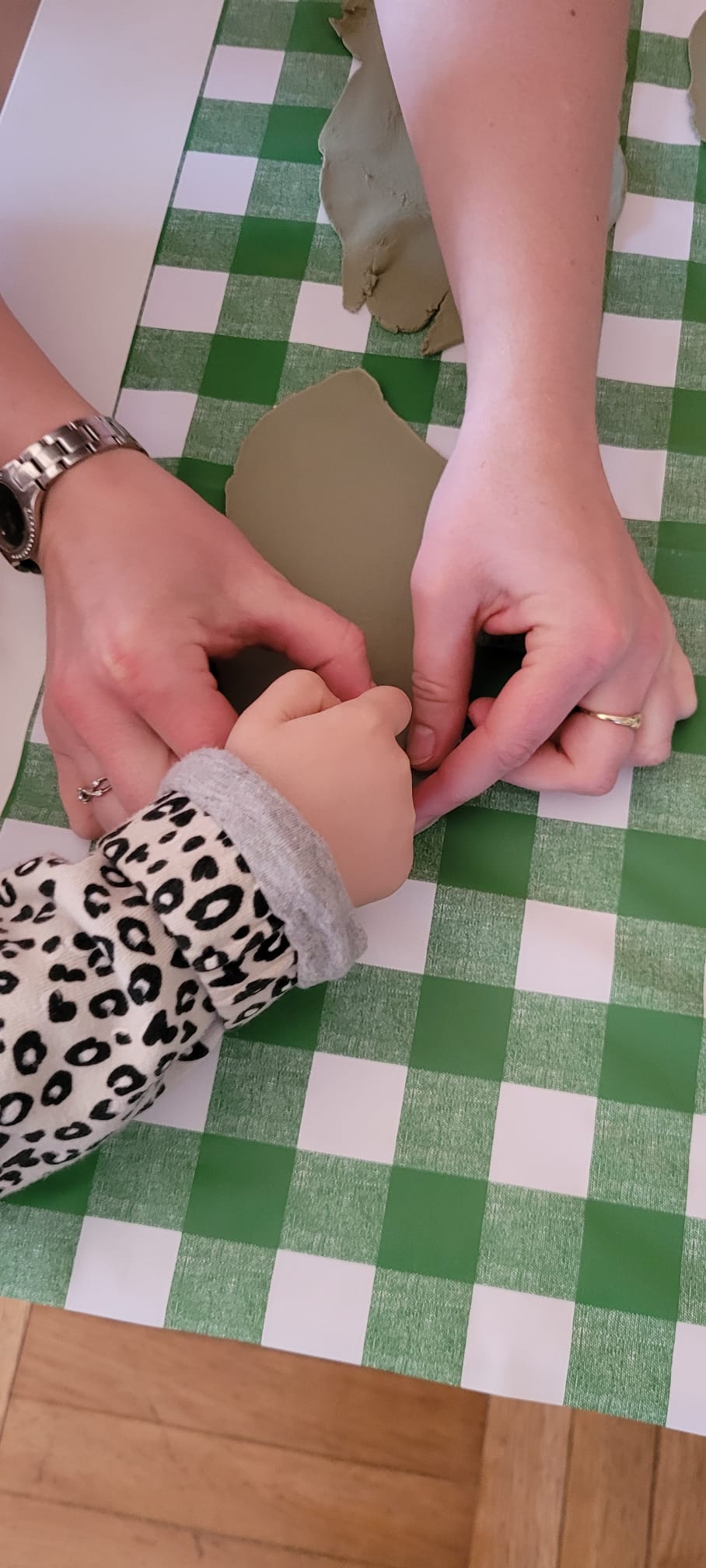 Dzieci wycinały listki z kolorowej masy plastycznej przy użyciu foremek do ciasteczek, rozwijając sprawność manualną i wyobraźnię.